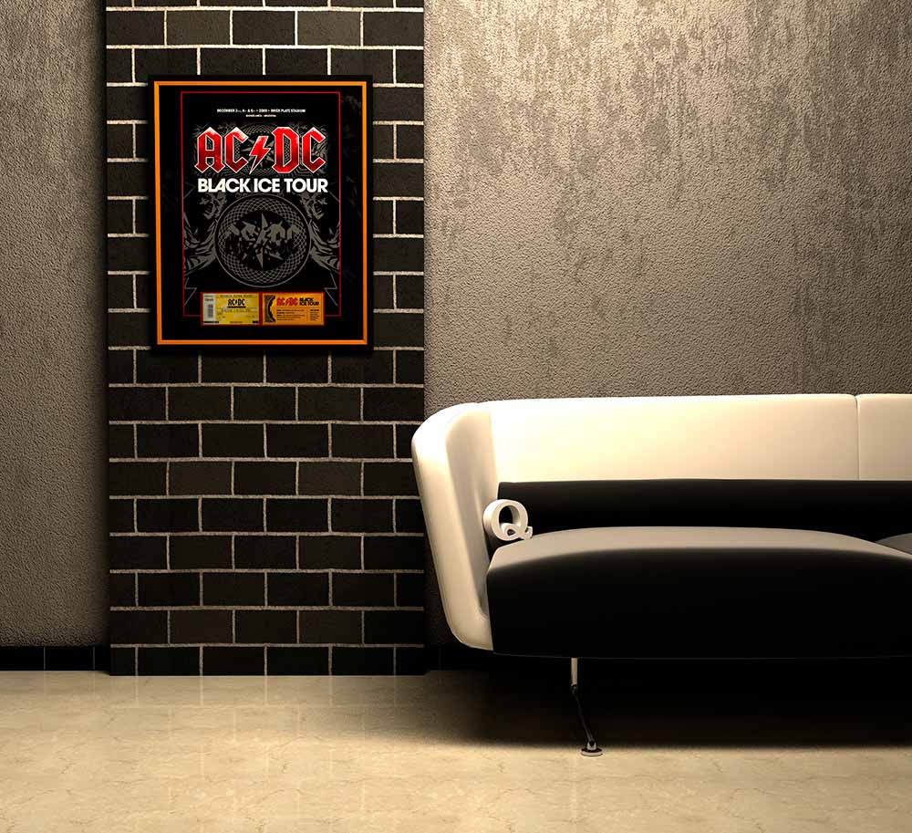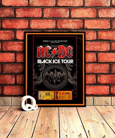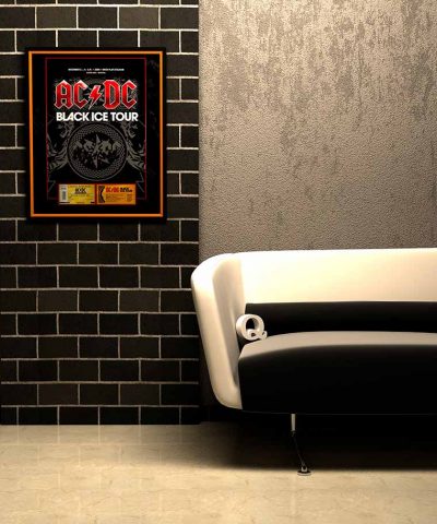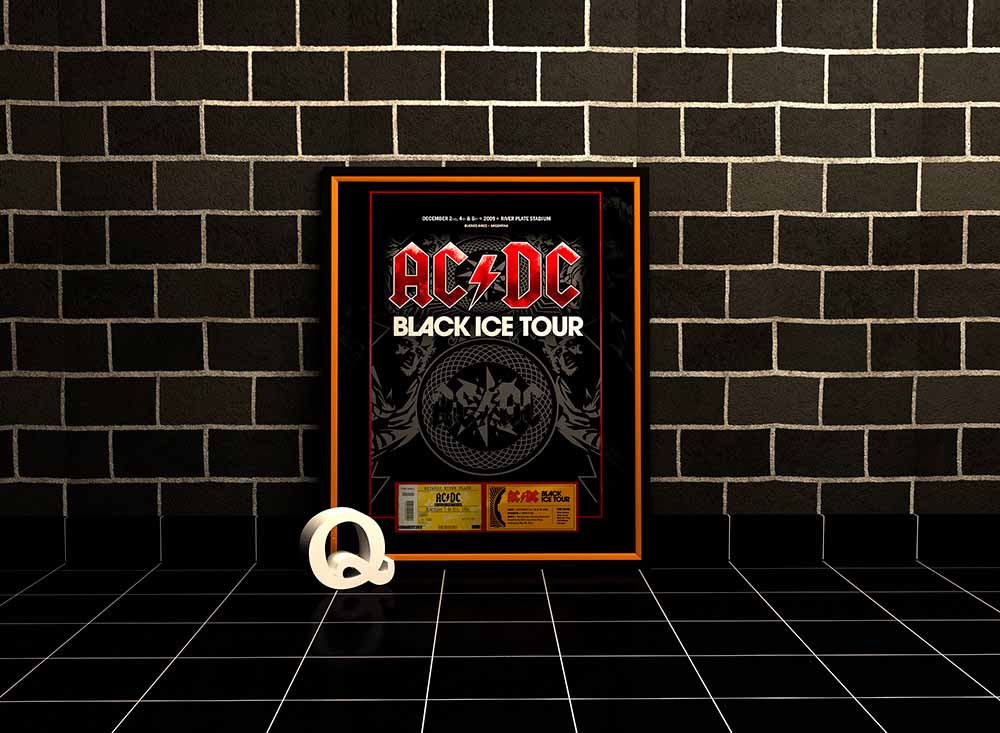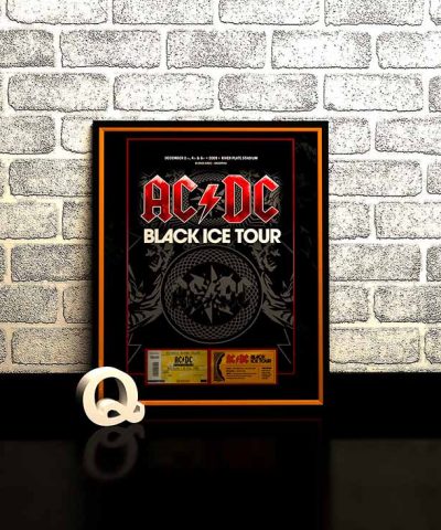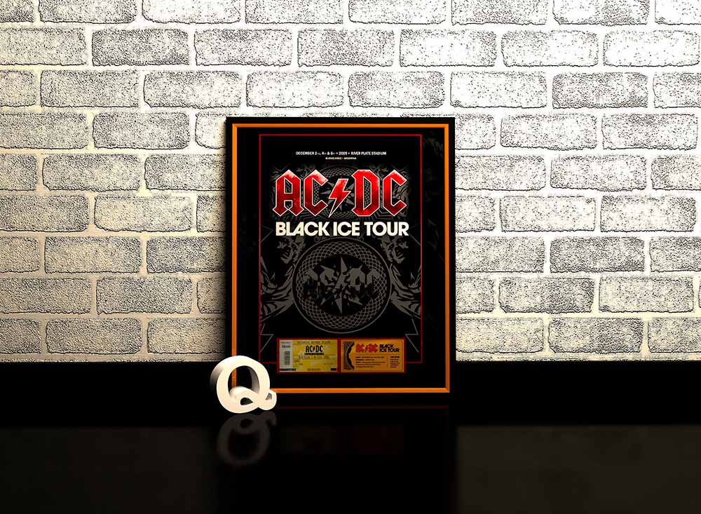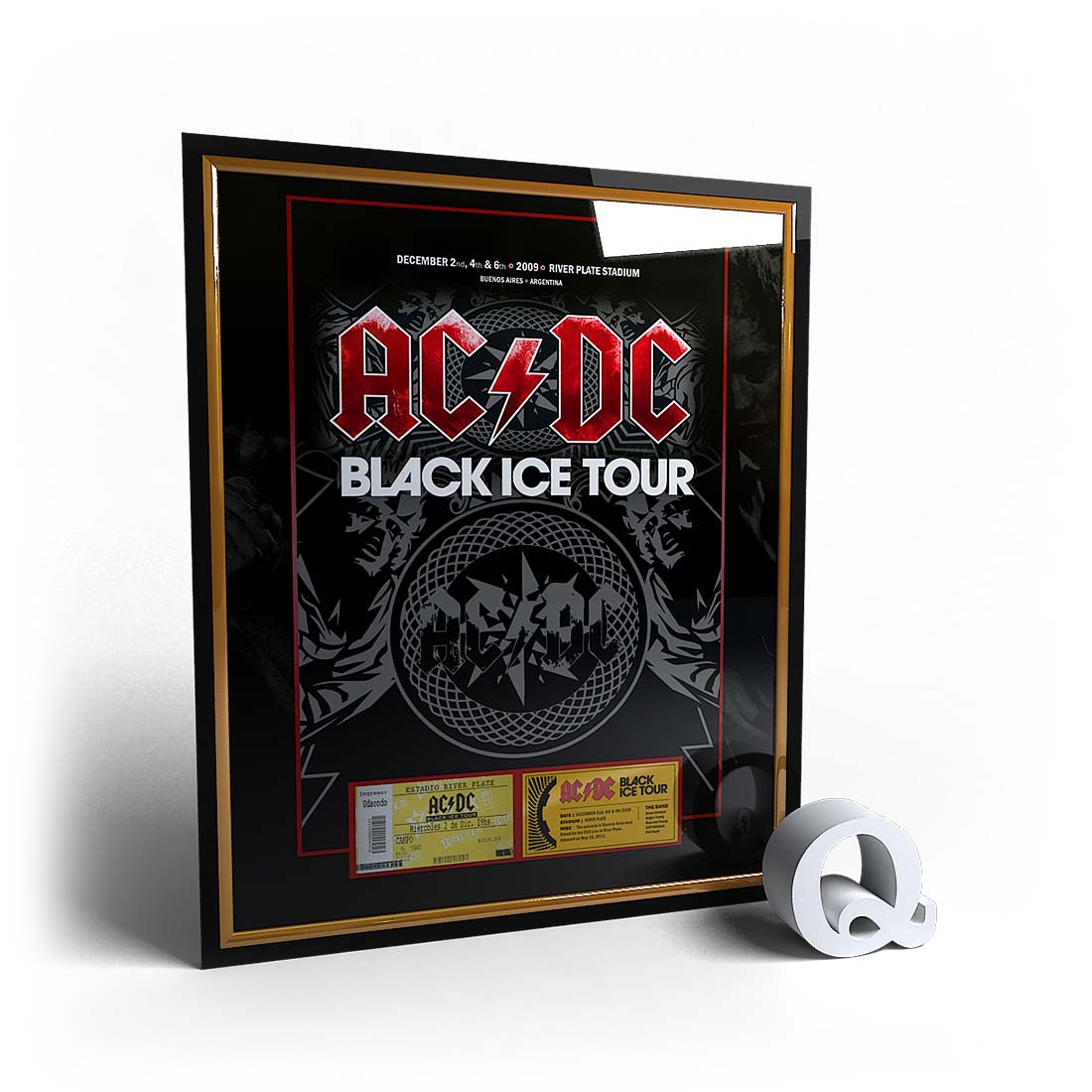 Fuiste a ver a AcDc a River? , entonces no podes perderte este increible item de colección. En el podes colocar tu entrada y asi resguardarla mientras que aparezca orgullosamente a la vista de todos. Excelente tamaño de 53 cms de Alto por 43 de ancho completamente en marco de madera, no plástico!. Lamina Ilustración Brillante con un diseño unico de la poster del Black Ice Tour en Argentina.