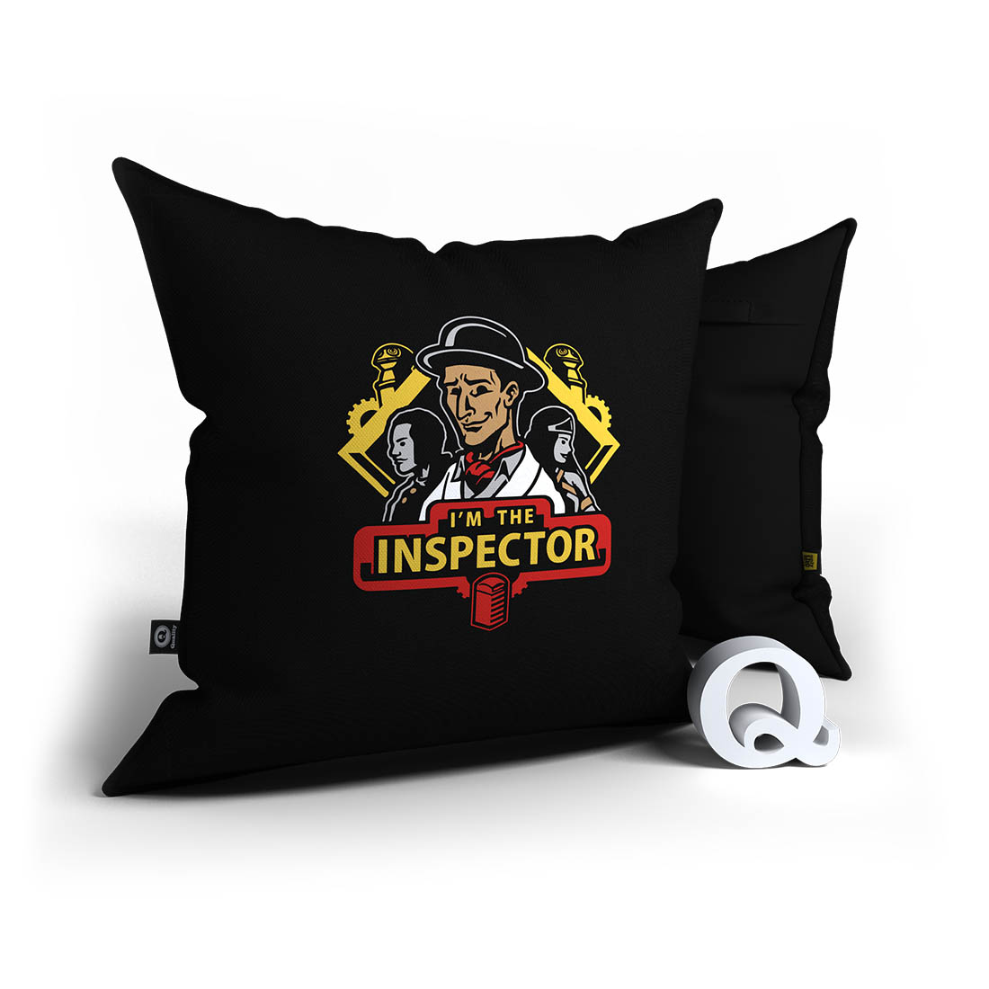 Espectacular almohadon estampado de la serie Community, del personaje Inspector Spacetime.
