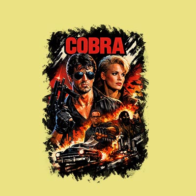 Espectacular remera estampada de la película Cobra de nuestra línea exclusiva Cult Classics.