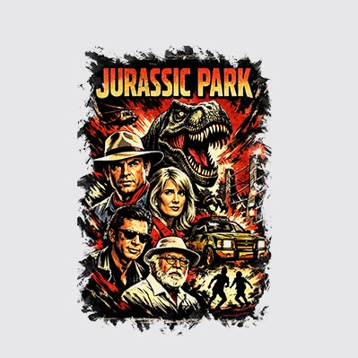 Espectacular remera estampada de la película Jurassic Park de nuestra línea exclusiva Cult Classics.