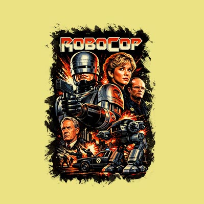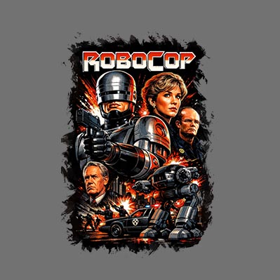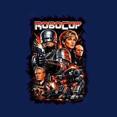 Espectacular remera estampada de la película Robocop de nuestra línea exclusiva Cult Classics.