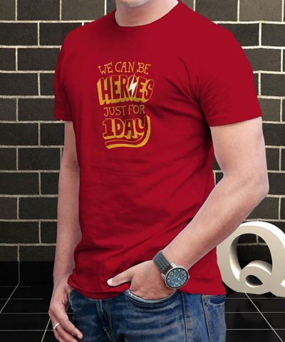 Espectacular remera estampada de una de las frases de la canción Heroes del músico David Bowie. En su espalda lleva el logo del artista, también estampado.