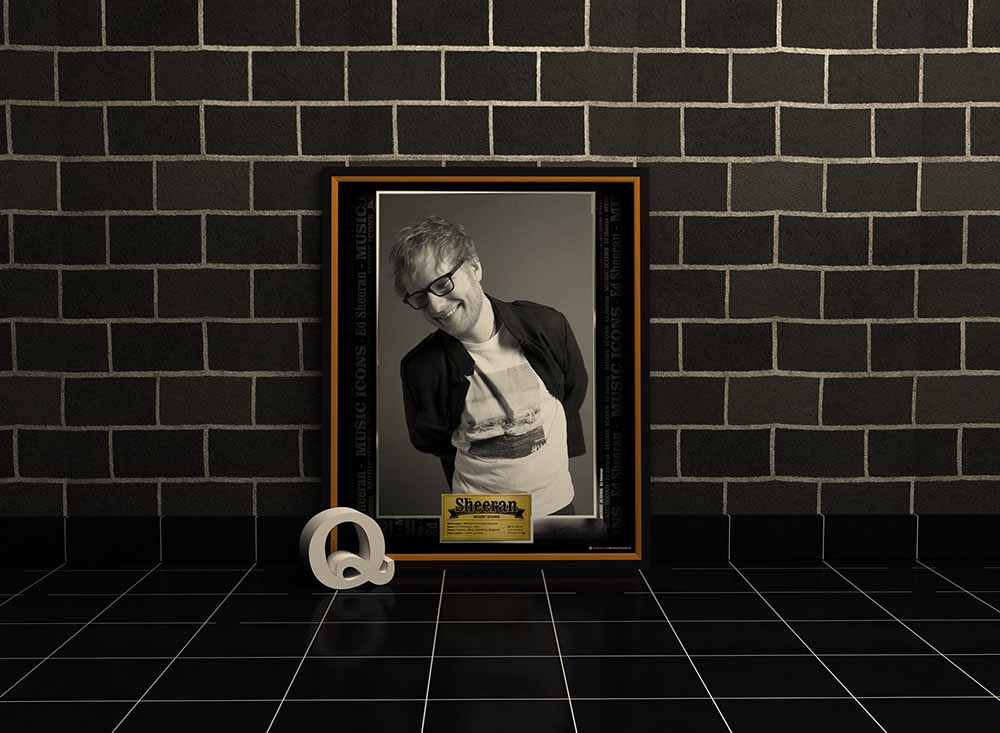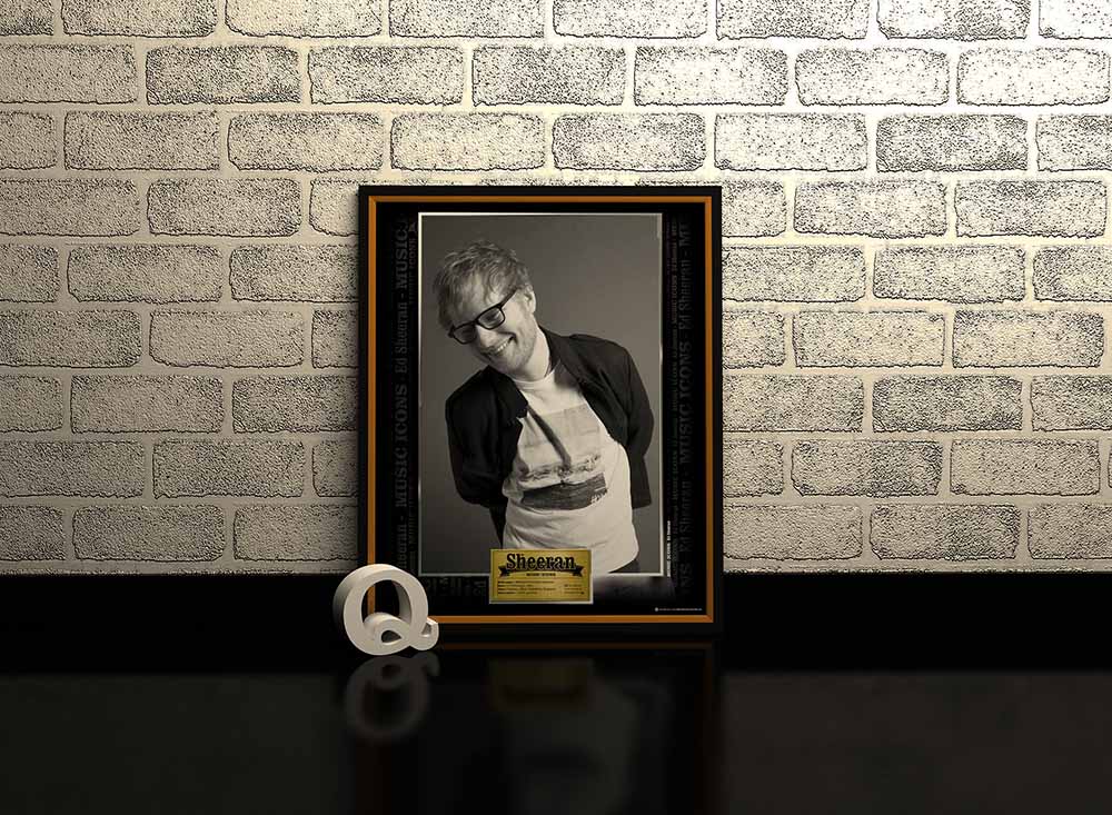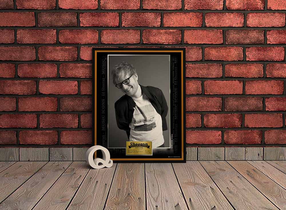 Espectacular marco conmemorativo de la linea Music Icons a Ed Sheeran. Excelente tamaño de 53 cms de Alto por 43 de ancho completamente en marco de madera, no plástico!. Lamina Ilustración Brillante con un diseño unico que incluye una de sus fotografias iconicas.