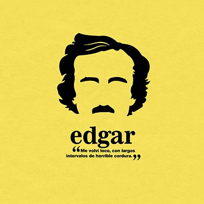 Espectacular remera estampada de la línea Genios, del personaje Edgar Allan Poe y su frase -Me volví loco, con largos intervalos de horrible cordura.-.