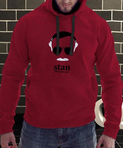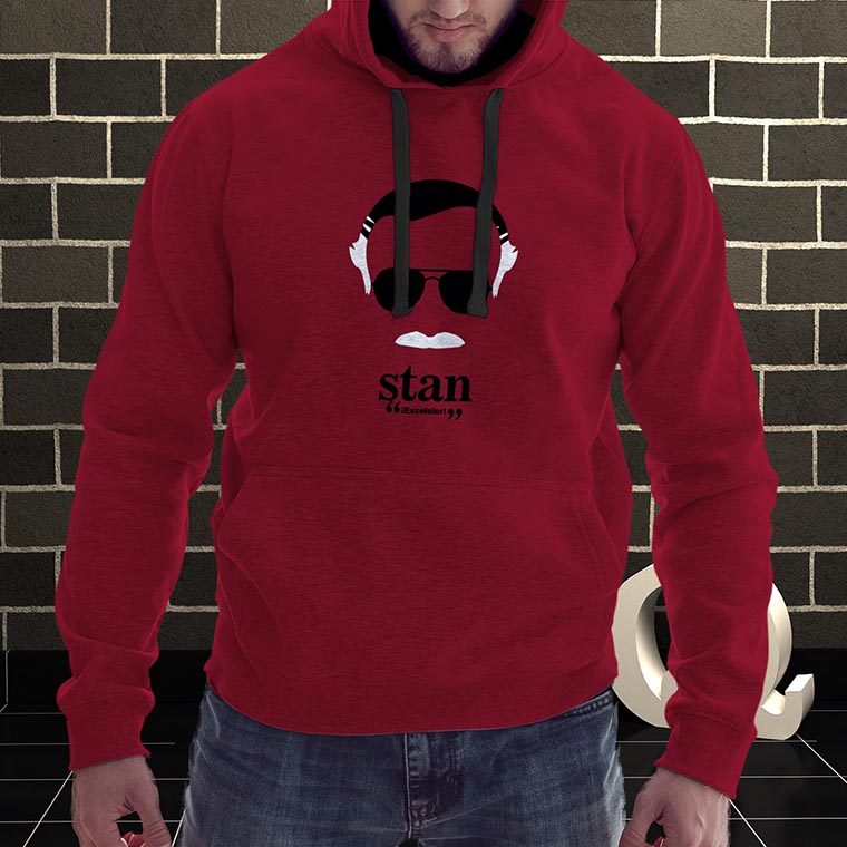 Espectacular buzo canguro estampado de la línea Genios, del personaje Stan Lee y su frase – Excelsior –.