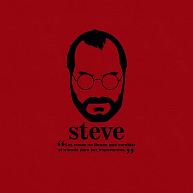 Espectacular almohadon estampado de la línea Genios, del personaje Steve Jobs y su frase -Las cosas no tienen que cambiar el mundo para ser importantes.-.