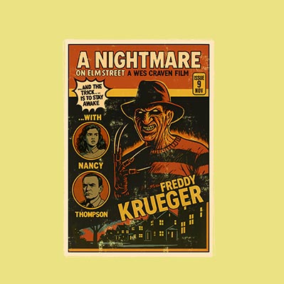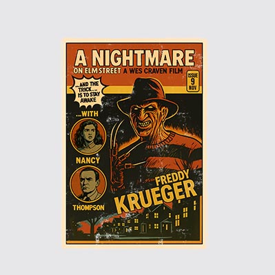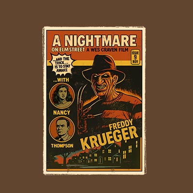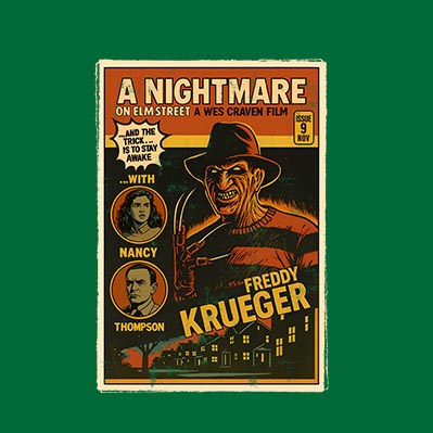 Espectacular remera estampada de la película A Nightmare on Elm Street de nuestra línea exclusiva Horror Comic.