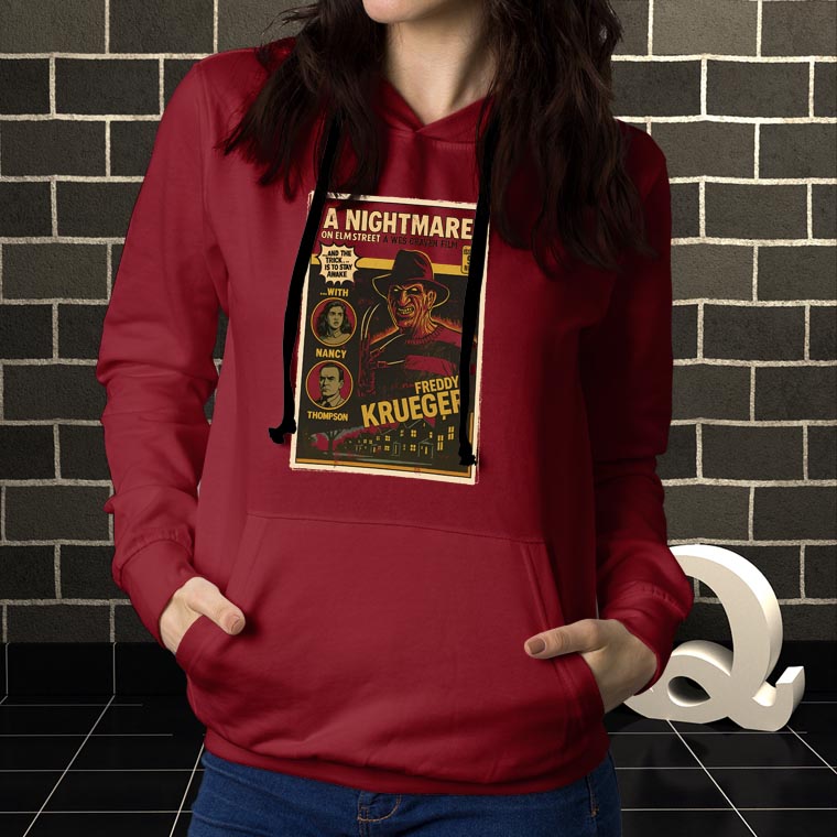 Espectacular buzo canguro estampado de la película A Nightmare on Elm Street de nuestra línea exclusiva Horror Comic.