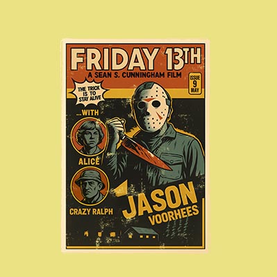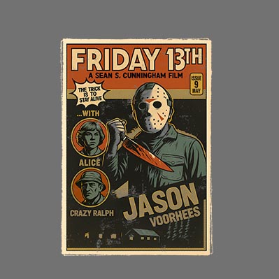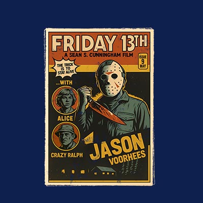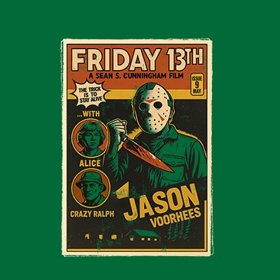 Espectacular remera estampada de la película Friday 13 – Viernes 13 de nuestra línea exclusiva Horror Comic.