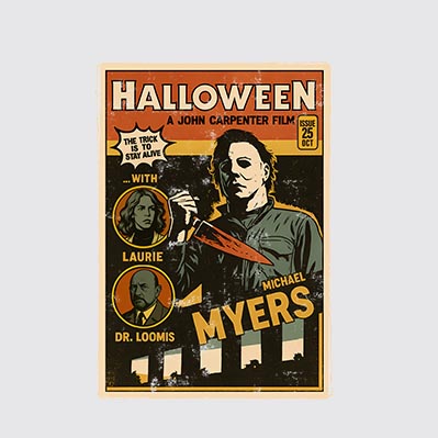 Espectacular remera estampada de la película Halloween de nuestra línea exclusiva Horror Comic.