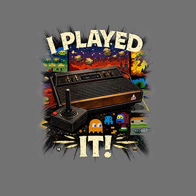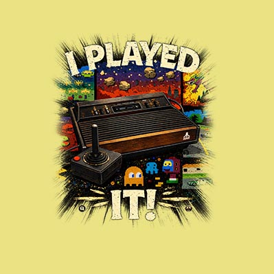 Espectacular remera estampada de la linea I Played It del juego Atari.