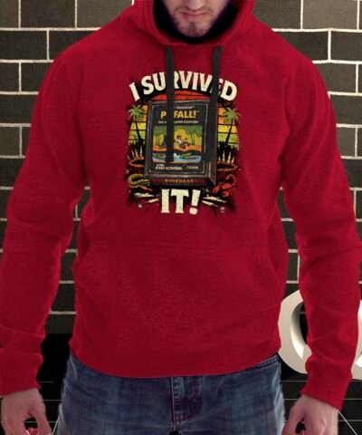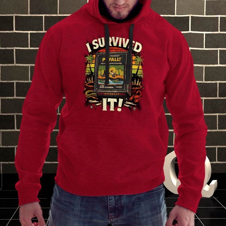 Espectacular buzo canguro estampado de la linea I Played It del juego Pitfall.