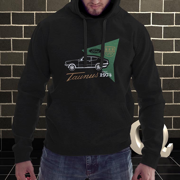 Espectacular buzo canguro estampado de uno de los modelos de autos más clásicos, el Taunus.