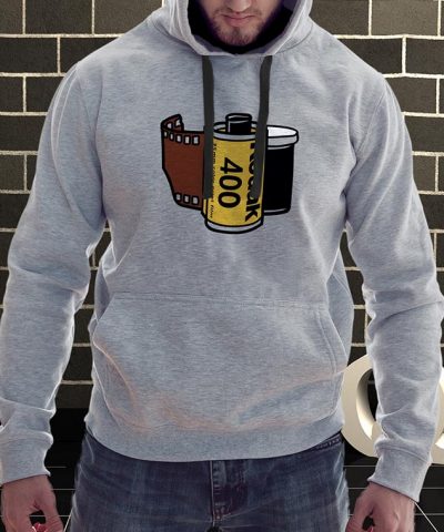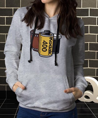 Espectacular buzo canguro estampado de un gran recuerdo de nuestra infancia, el rollo de fotos 35mm.