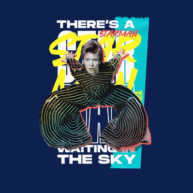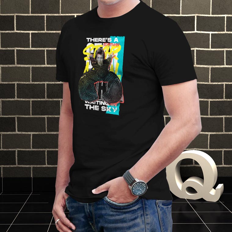 Espectacular remera estampada de David Bowie y su tema Starman.