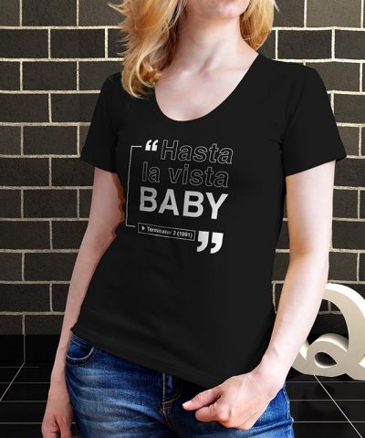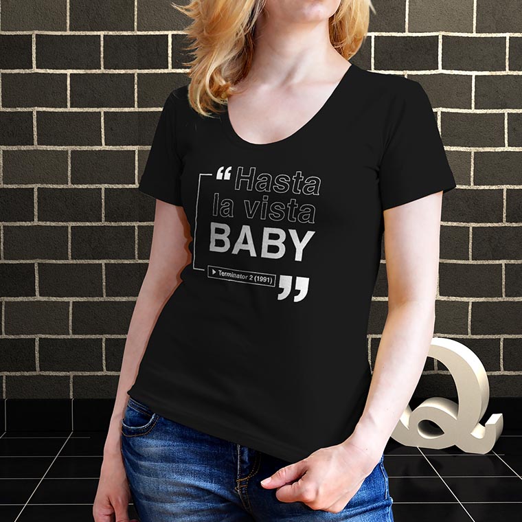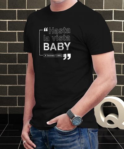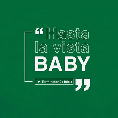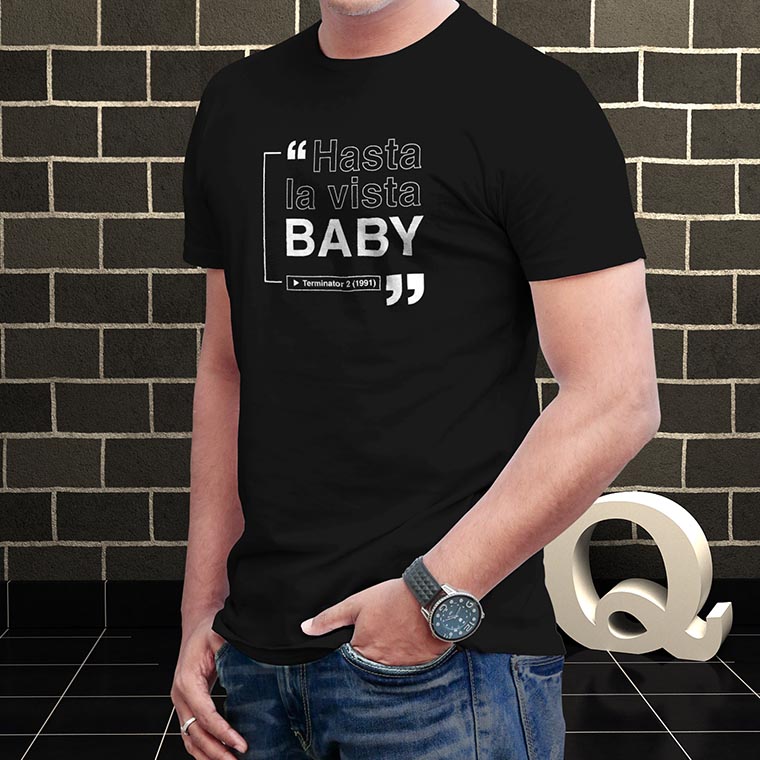 Espectacular remera estampada de una de las frases más icónicas del cine, de la película Terminator.