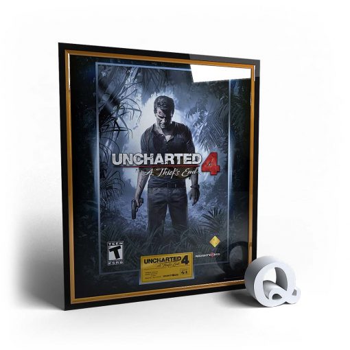 Espectacular marco conmemorativo de uno de los juegos mas importantes del catalogo exclusivo de Sony, Uncharted 4 – A thiefs End, una pieza de colección. Excelente tamaño de 53 cms de Alto por 43 de ancho completamente en marco de madera, no plástico!. Lamina Ilustración Brillante con la reproducción de la tapa del juego.