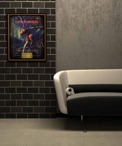 Espectacular marco conmemorativo de la película Underground, una pieza de colección. Excelente tamaño de 53 cms de Alto por 43 de ancho completamente en marco de madera, no plástico!. Lamina Ilustración Brillante con la reproducción del afiche publicitario de la pelicula.
